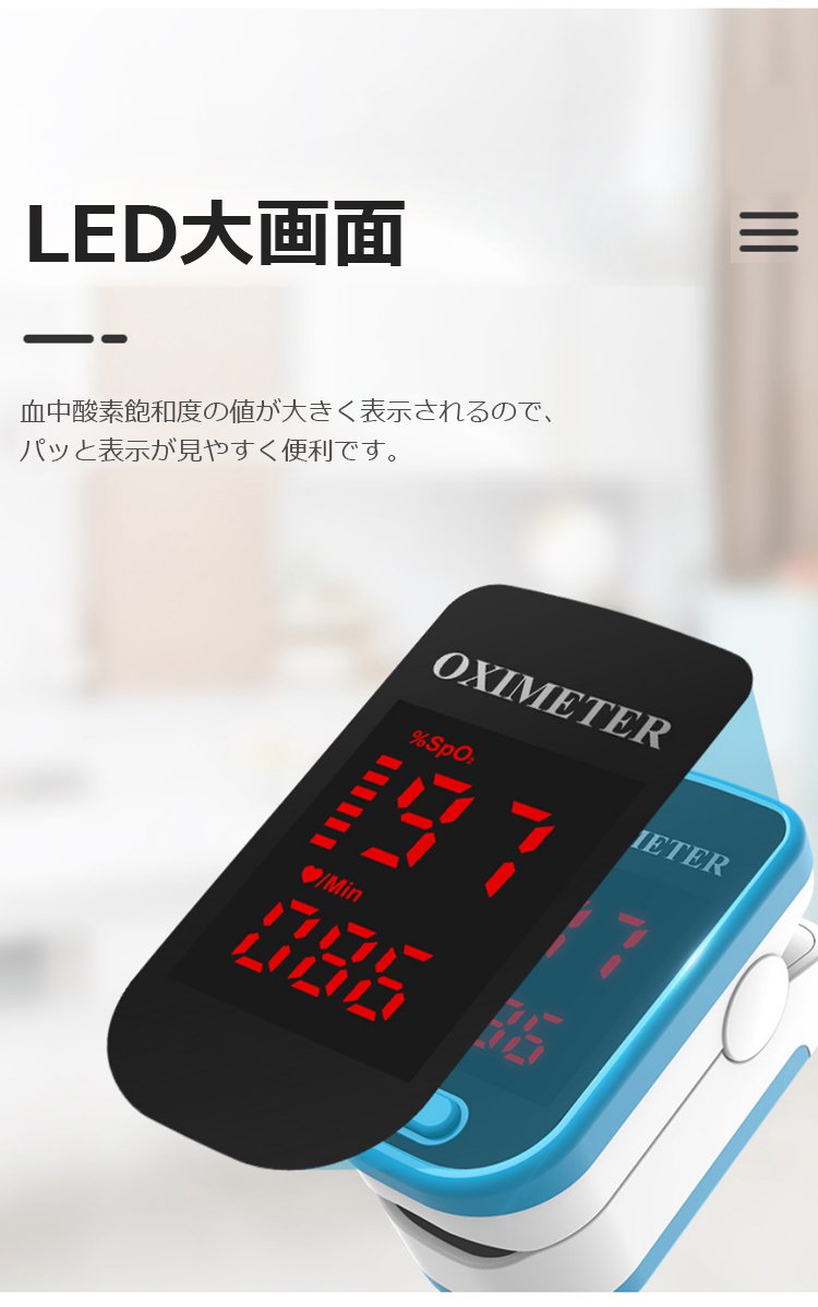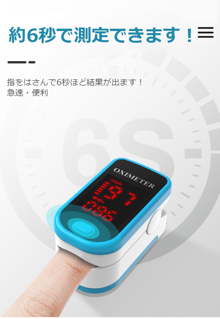 血中酸素濃度計【指をはさむだけの 簡単測定】6秒で急速測定
