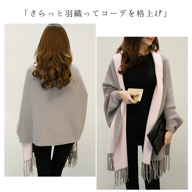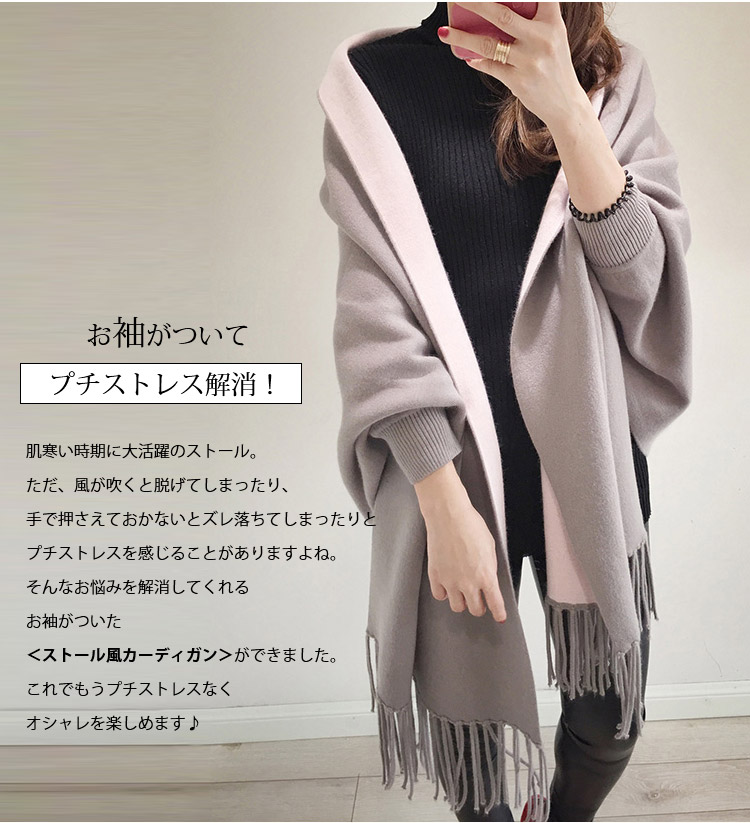 【ストール風カーディガン】袖付きなので、コートのかわりに一枚で楽ちんお洒落. 毛布やひざ掛けとしても使える!